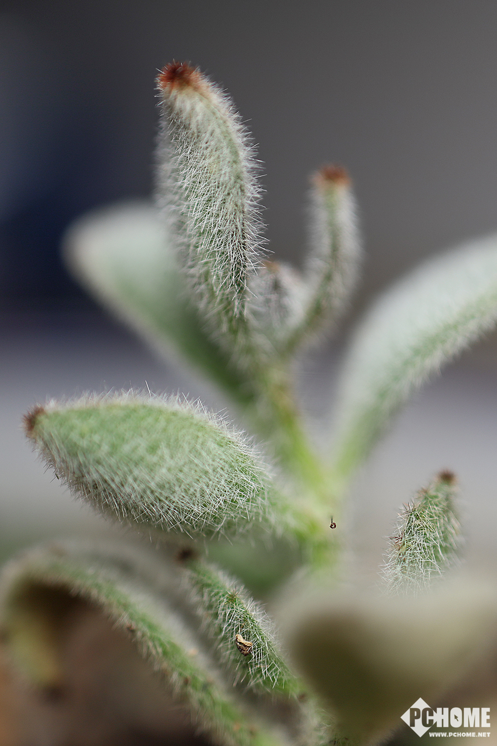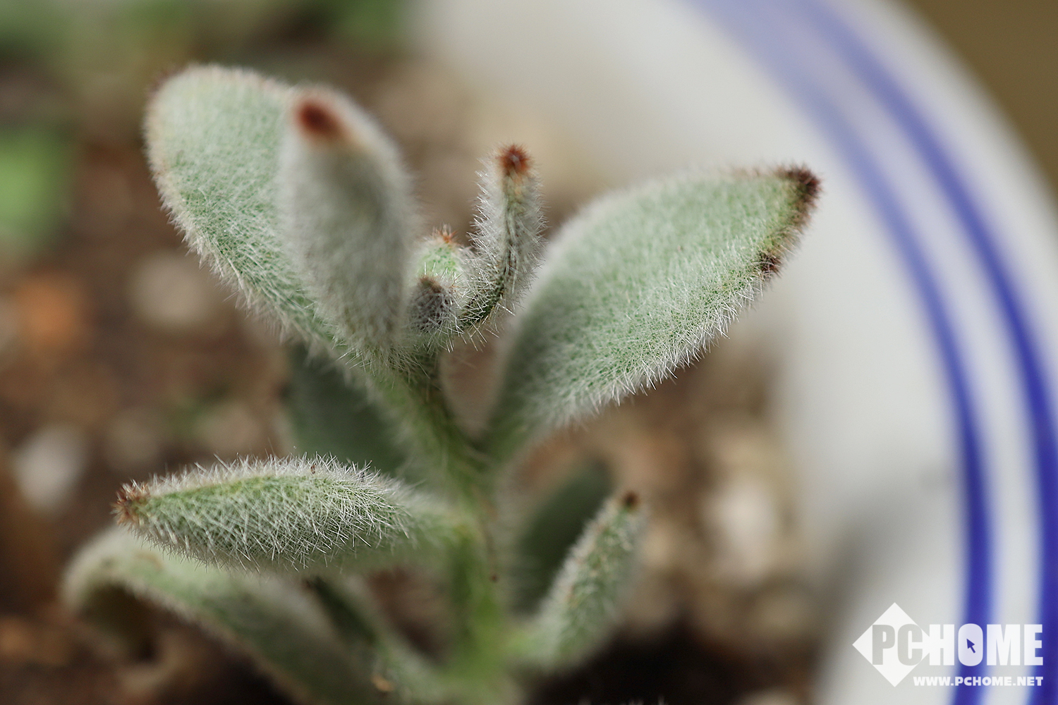 这张图可以很好的看出焦内的锐度,多肉上细细的绒毛在微距镜头下就像被放大镜放大了一样,根根毕现,什么是可以数毛,这就是可以数毛。