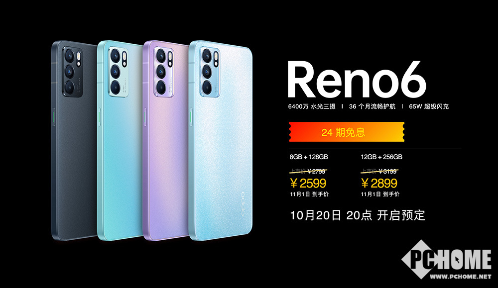 需要说明的是,以上四款产品优惠都需要提前预定,预定开启时间为10月20日20点。预定结束后,11月1日当天即可享受优惠后的到手价格。其中Reno6和Find X3两款售价相对较高的产品,还支持24期免息,让用户购机更加轻松。