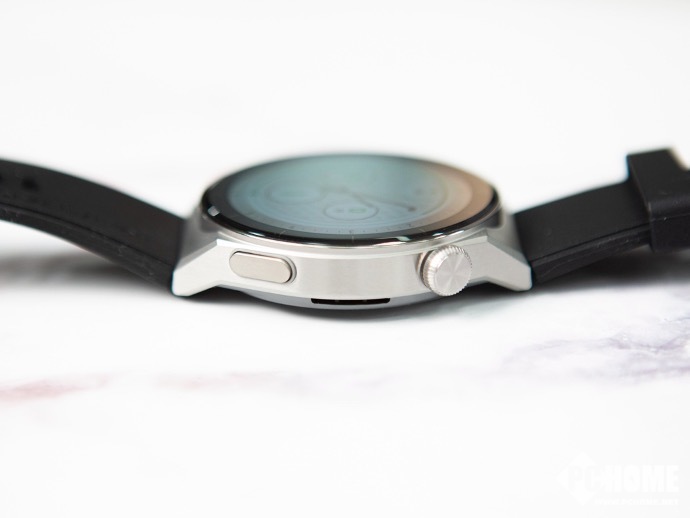 表壳右侧边位置有两枚按键,一枚是带触觉反馈的3D旋转表冠,在进行了一些滑动操作的时候可以通过旋转表盘进行更加精细化和便捷的操作,且在旋转表冠时也会伴有震动反馈,旋钮的阻尼和精准性也都可圈可点。