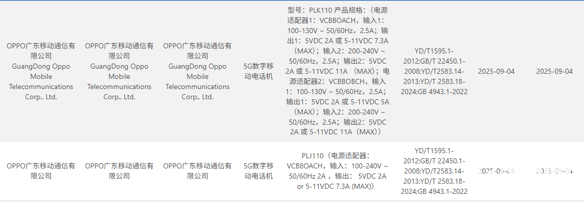 除此之外,OPPO Find X9也通过了3C认证,该机在快充方面上没有一加那么激进,只配备了80W超级闪充。