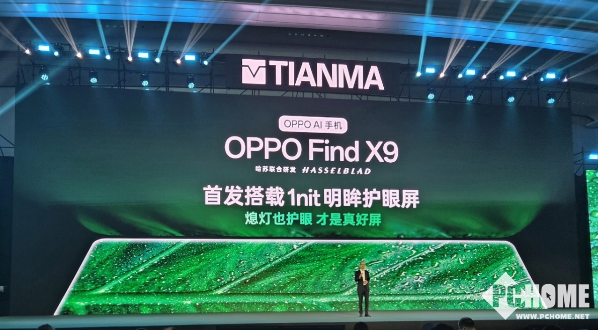 根据现场的展示来看,OPPO Find X9的1nit明眸护眼屏,在暗光环境下的显示效果尤为出色。在黑暗环境中的亮度低至1nit,比普通手机的亮度更低,完全不会有刺眼的显示效果。