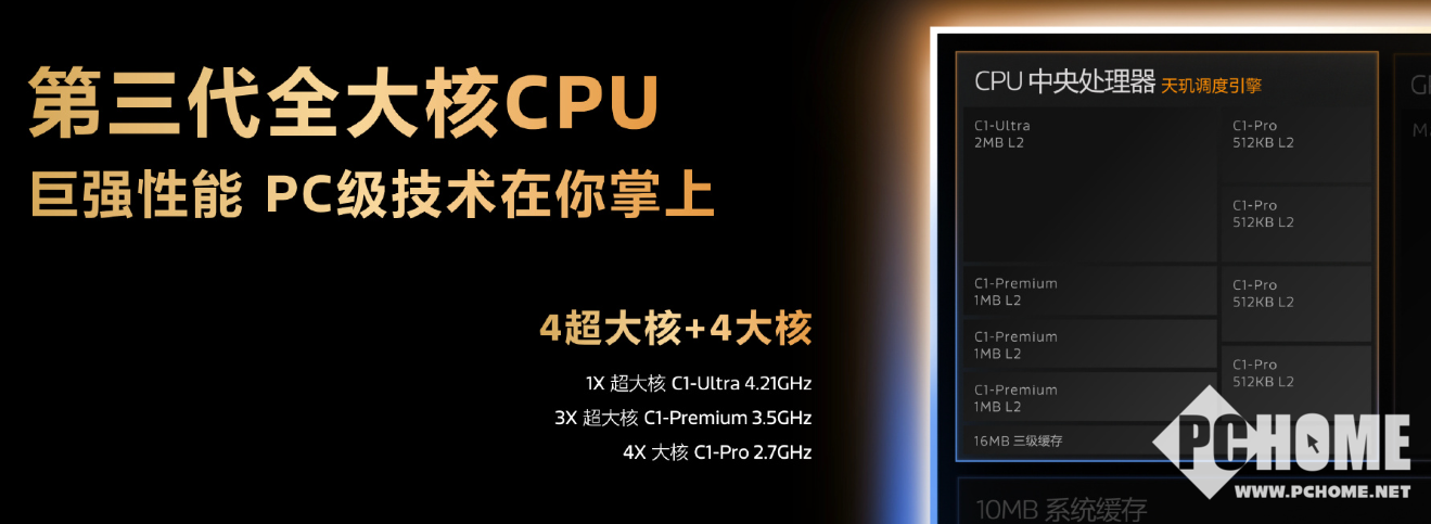 天玑9500全面焕新的全大核CPU架构包含1个主频高达4.21GHz的C1-Ultra超大核,以及3个C1-Premium超大核和4个C1-Pro大核,率先集成矩阵运算指令集SME2,率先支持4通道UFS 4.1闪存架构。天玑9500的单核性能相较上一代提升32%,多核性能提升17%,超大核功耗相较上一代X925峰值性能下降低55%,多核功耗相较上一代峰值性能下降低37%。天玑9500率先采用第二代天玑调度引擎,将强劲性能转化为用户可感知的超凡体验,赋能终端日常应用和重载场景兼顾高流畅和高能效特性。