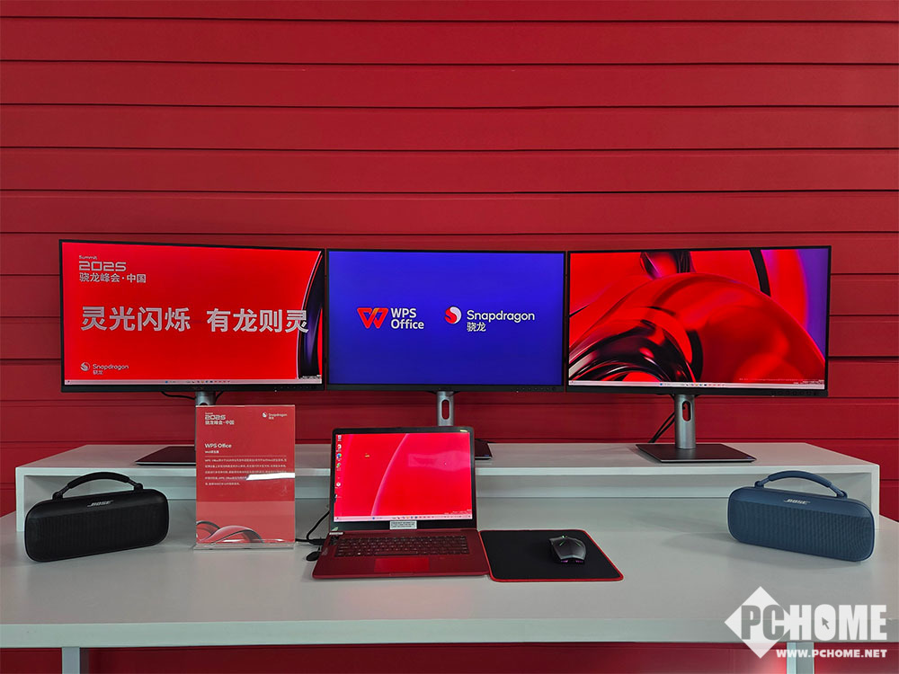 在办公使用上,WPS已经对骁龙PC进行了原生适配,能够获得更快速的文件打开速度,还能通过NPU的强大AI算力,获得全面的AI体验。现场的演示中,外接了3个4K分辨率大屏,还能连接两个额外音箱,办公使用是绰绰有余了。