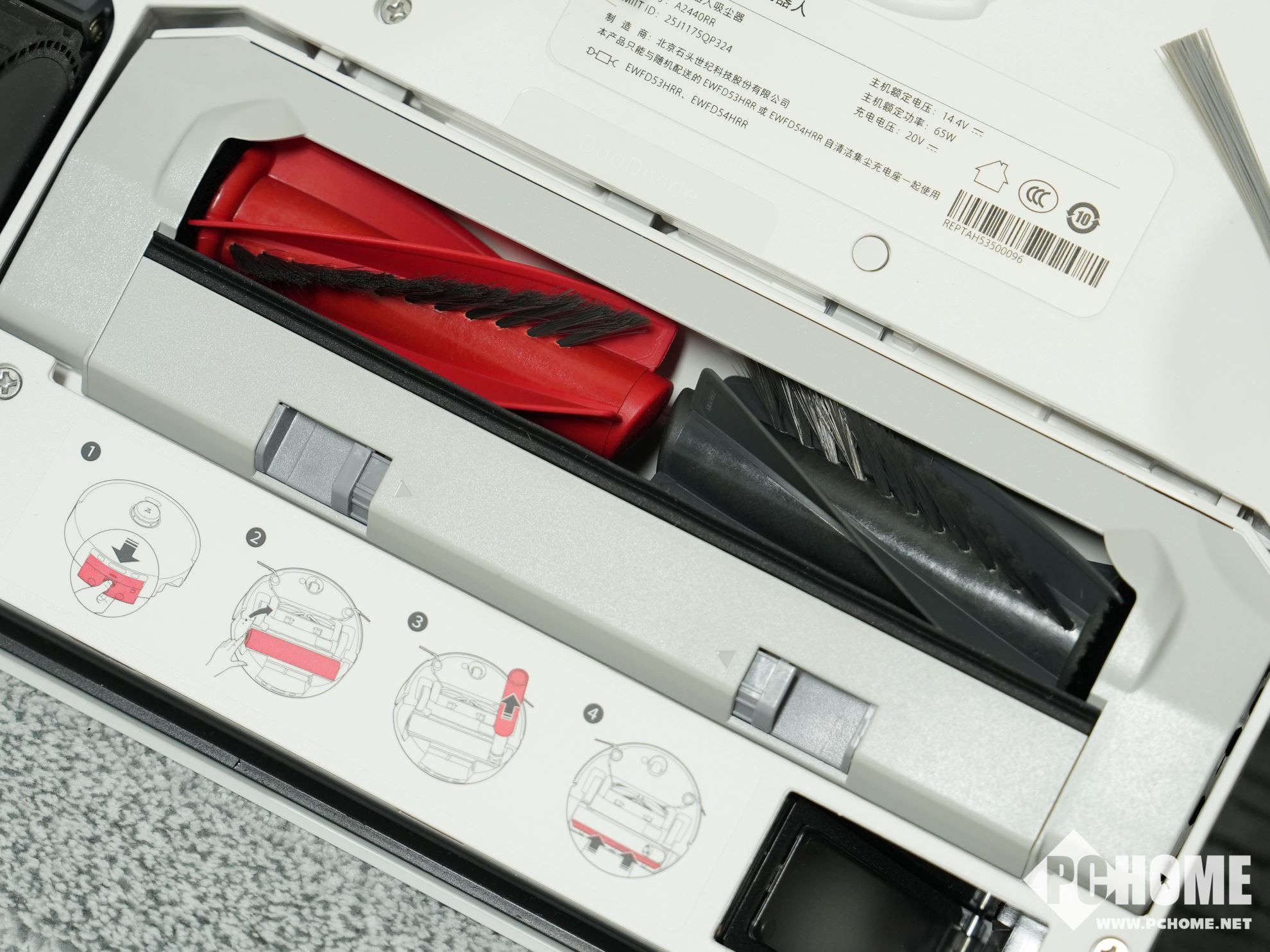 双边刷不仅让清洁效率更高,对于毛发的吸除也是更佳的解决方案。左边刷辅助聚拢能避免头发、宠物毛发直接卷入主刷造成缠绕。在清理地面的毛发时,主刷的对刷导流路径短,能让灰尘毛发快速聚集,0缠绕主刷以及边刷协同,快速拾取毛发的同时大幅减少缠绕率。再搭配20000Pa的吸力以及窄口高速风道设计,灰尘毛发能高速到达尘盒。石头P20活水版的双边刷已通过SGS认证,双边刷的加入是对拖地整体方案的系统化思考,解决了用户日常生活中的真实痛点。