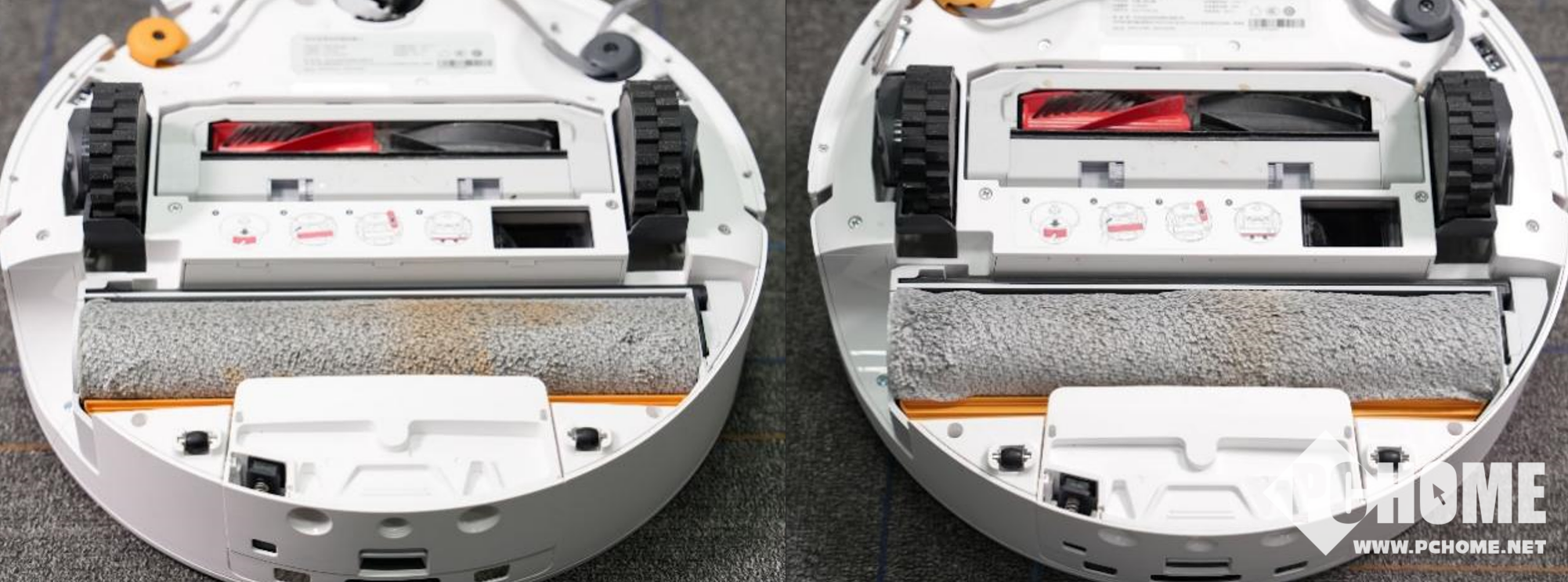 根据对比来看,清洁完地面重污渍的滚筒还残留一些酱油印子,在经过高温洗布后,拖布变得更干净,基本上看不出来重污渍残留了。高温洗布也能更彻底的杀菌、去除异味。