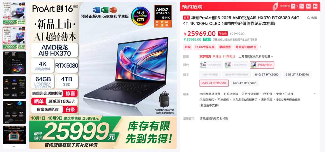 全新华硕ProArt 创16 2025今日开售,AI赋能移动创作巅峰