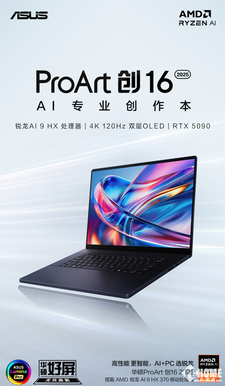 华硕ProArt 创16 2025系列笔记本正是基于这一需求而生:它不仅集结了顶尖的硬件配置,更通过全方位的软硬件优化,真正理解了创作者的工作习惯与痛点,自今年5月上市以来深受广大创作者欢迎。目前,首次搭载NVIDIA GeForce RTX 5090笔记本GPU的版本更新上市,更是把“AI 专业创作本”推向了新的高度。