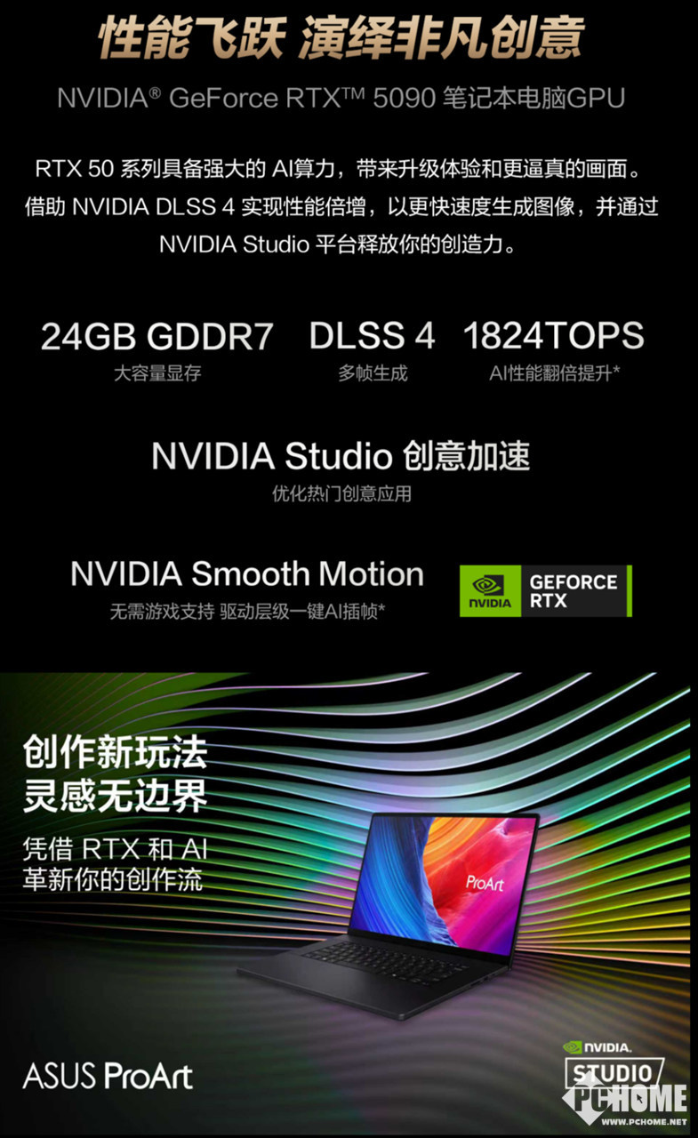 伴随即将推出的RTX 5090版本,这款创作本的整体性能还将进一步提升,为追求极致的创作者提供更多选择。在内容创作日益多元化的今天,无论是专业影像工作者、AI内容创作者,还是设计行业从业者,华硕ProArt创16 2025都能成为值得信赖的创作伙伴。