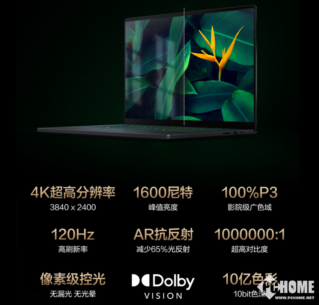 屏幕HDR峰值亮度最高可达1600尼特,在大多数光照条件下,画面都能保持清晰鲜艳。其AR抗反射涂层可减少65%环境光造成的反射,同时搭配3.5倍环境对比度(ACR)增强技术,能在多种环境下提升画面清晰度,减轻眼部疲劳。