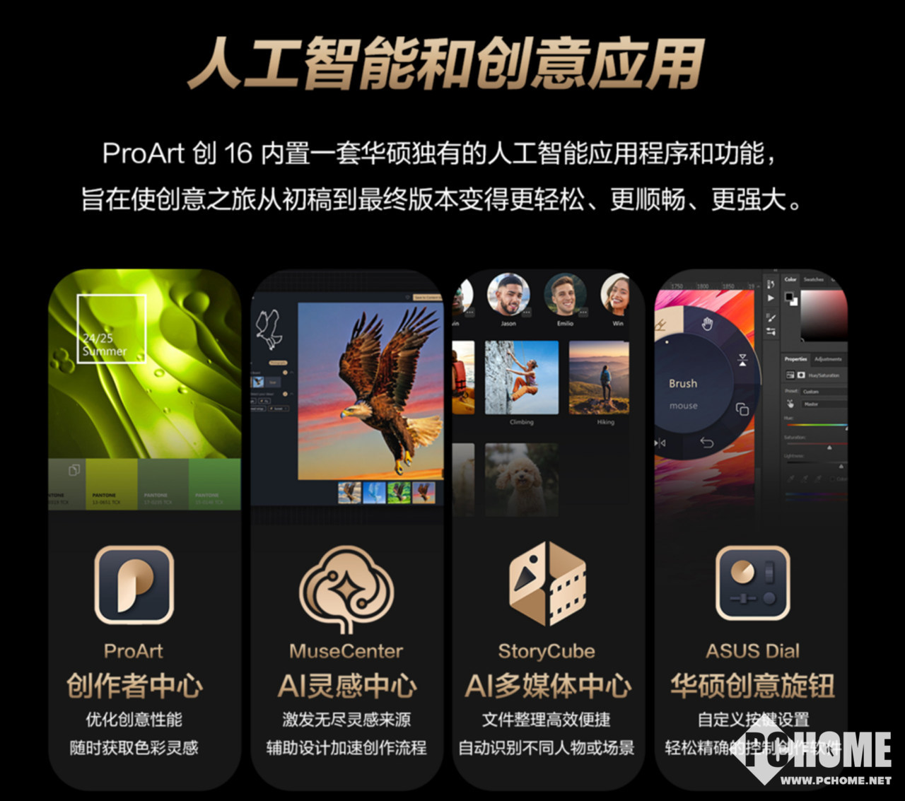 作为AI专业创作本,华硕ProArt创16 2025在人工智能应用方面做了深度优化。内置的小硕知道本地大模型助手,支持智慧问答、文档总结、个人知识库、AI绘图、AI识图等功能,即使在无网络的情况下也能访问本地模型持续为你提供帮助,为创意构思提供灵感支持。StoryCube智能媒体中心能够自动分类整理素材,通过人脸识别和场景分析快速定位所需内容,帮助创作者高效管理海量文件。这些贴心的AI应用,让创作过程不再被繁琐步骤分散注意力,让创作者能更专注于创意本身。而此次新增的MuseCenter为创作者提供丰富的创意资源与灵感库,帮助创意工作者突破创作瓶颈。