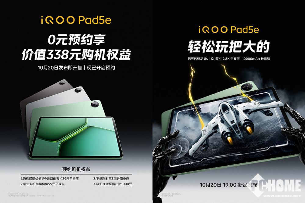 玩家的超神装备,iQOO全家桶新品 — iQOO Pad5e、iQOO WATCH GT 2 和iQOO TWS S 也将在 10 月 20 日(周一)发布会同场亮相,现已开启预约,超值权益等你来拿。iQOO Pad5e 具备第三代骁龙8s,12.1英寸2.8K电竞屏,让你轻松玩把大的;iQOO WATCH GT 2 配备 2.07 英寸超亮全景屏和全新电竞模式,腕上方寸助你时刻高能;iQOO TWS S 拥有 60dB 旗舰降噪和 42ms 全链路游戏低延迟,游戏世界亦能听声制胜。