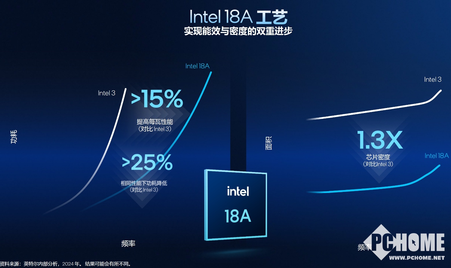 RibbonFET和Power Via这两项堪称革命性的技术加在一起,让18A制程相比Intel 3制程的每瓦性能提升高达15%,芯片密度提升约 30%,也就是说相同频率功耗更低,相同功耗下频率更高。