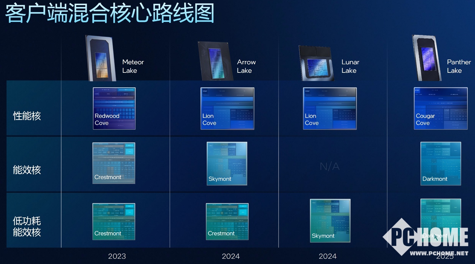 核心配置方面,此次Panther Lake也设计了专为18A制程设计和优化的全新核心IP。我们都知道,英特尔从第12代酷睿处理器开始引入不同核心的混合架构设计,P(性能核)+E(能效核)+LPE(低功耗能效核)的组合在桌面端和移动端产品上均有应用。