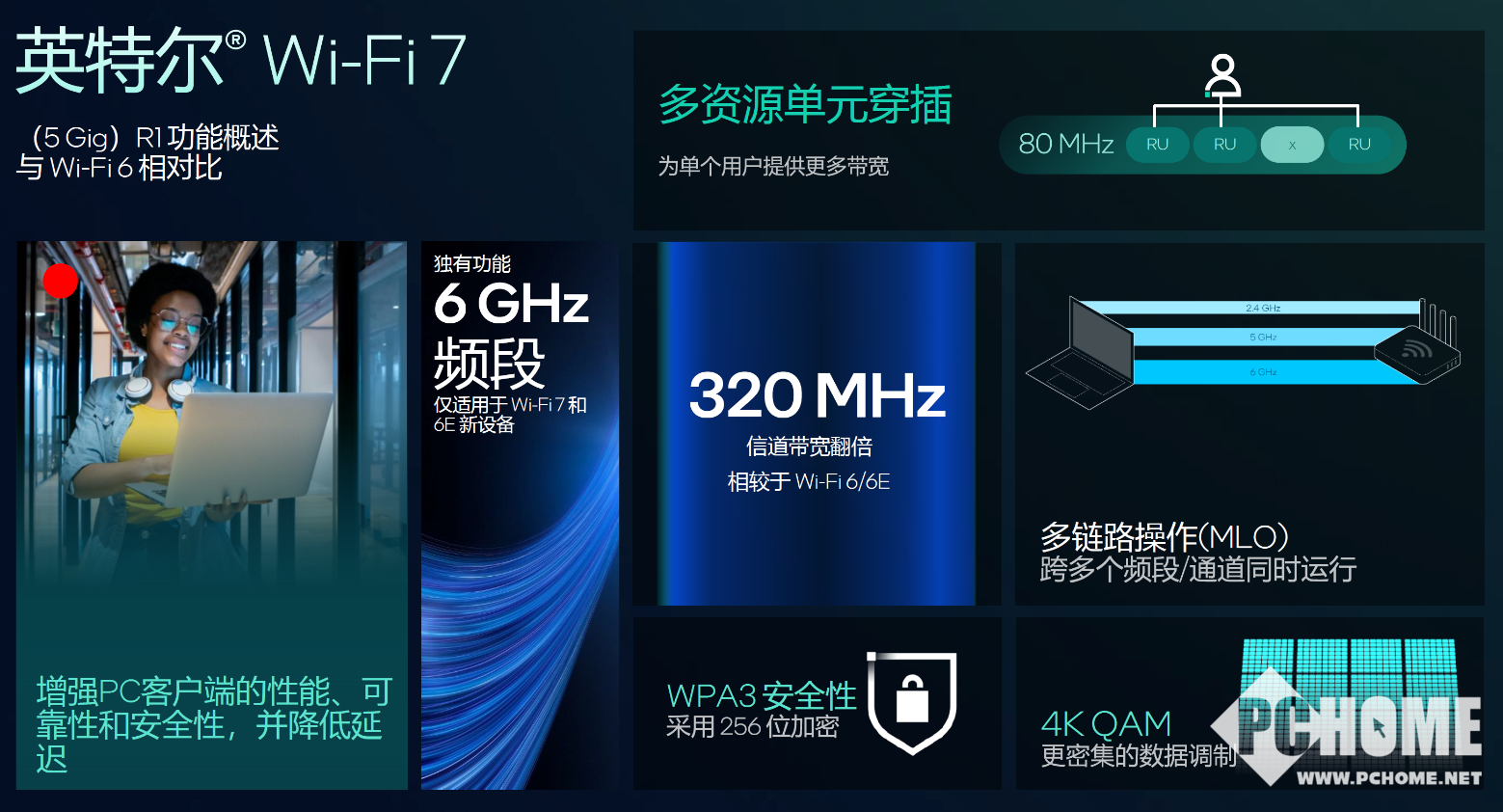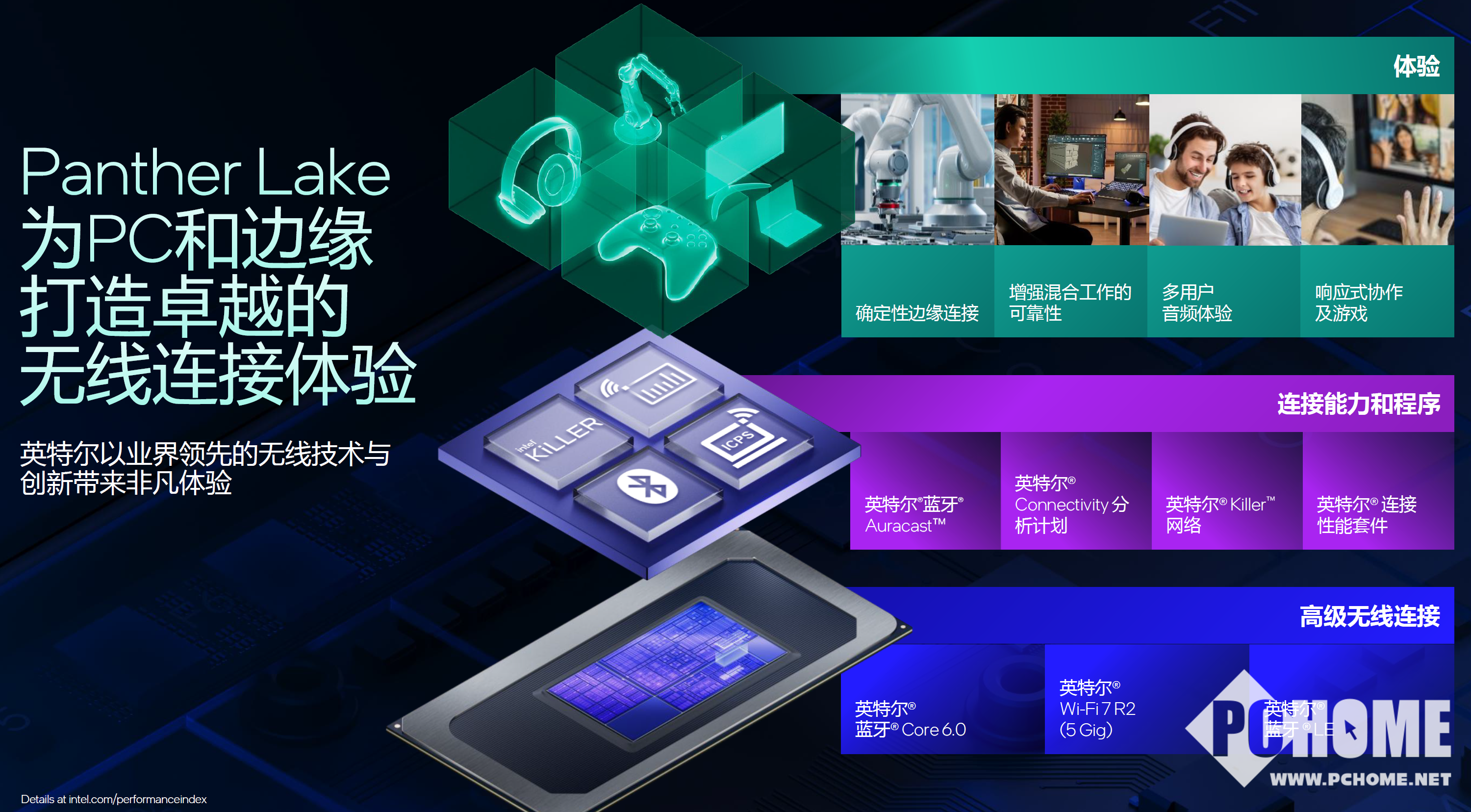 还有一点容易被忽略但值得说的是,Panther Lake在无线连接方面也取得了长足的进步,WIFI 7、Bluetooth 6,以及1GbE MAC技术等都具备了更强的灵活性。