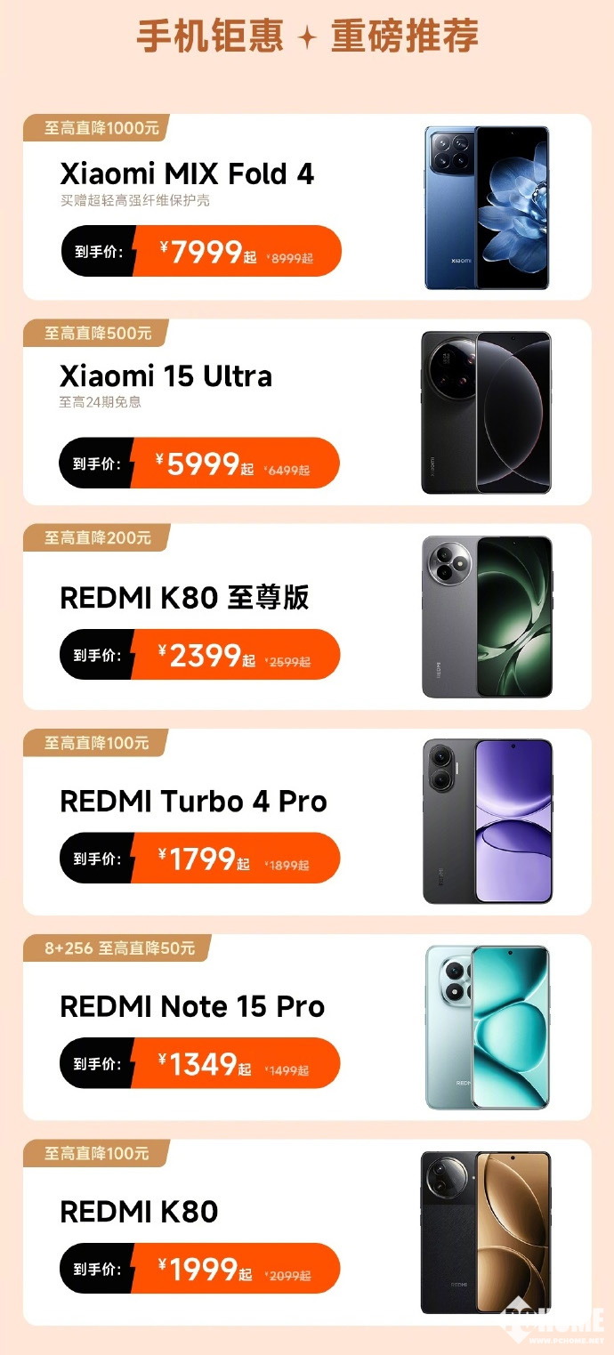在老款机型中,小米方面则进行了不同程度的降价,折叠屏手机小米MIX Fold 4到手价7999元,有着1000元的降价大幅度降价。作为一款已经推出1年多的老款机型,算是降价清理库存了。