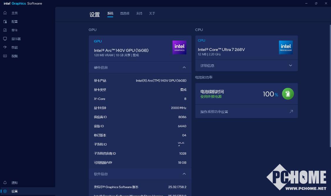 显卡部分,Ultra 7 268V集成Intel Arc 140V GPU,采用全新Xe2图形微架构,GPU性能相比上代大幅提升。