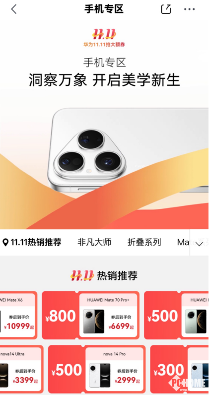 【PChome概述】10月15日起华为爆品全面降价 京东11.11购Mate 70 Pro+到手价6699元 华为Mate X6直降1500元