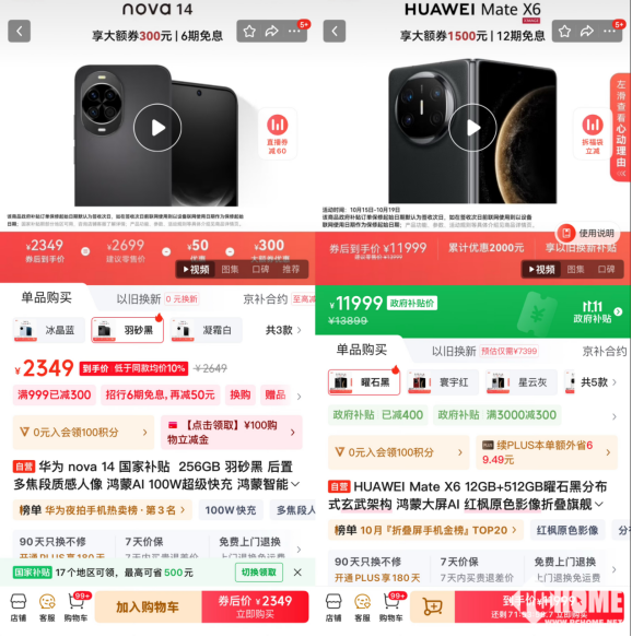 华为全面降价 京东11.11购华为Mate X6直降1500元