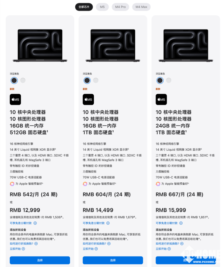 值得注意的是,在M5版本MacBook Pro上架之后,M4版本已经从苹果官网下架,目前只剩下M4 Pro和M4 Max版本可供选择。