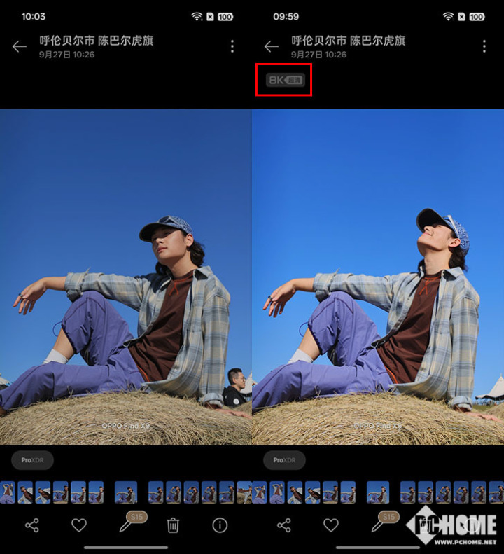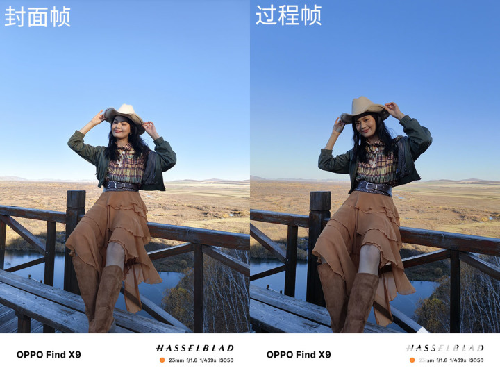 静态照片的清晰度升级之外,OPPO Find X9在动态的实况照片上,将2K级分辨率全面升级到了4K超清分辨率,在拍实况照片时,就能够让封面帧和过程帧,处于相同级别的分辨率,因此在3秒的实况过程中,任意一帧都能是壁纸级别的超清画面,每一帧都是不降画质的超清效果。这里我们截取了同一张实况照片的封面帧和过程帧,完全没有之前一换封面就糊的感觉。
