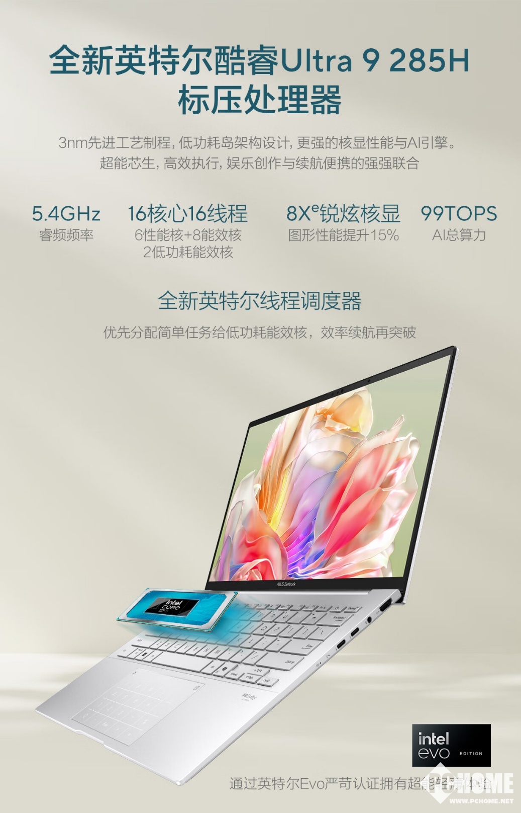 性能方面,华硕灵耀14 2025搭载了全新英特尔酷睿Ultra 9 285H处理器,带来显著的性能提升与能效优化。配合AI智能调度与优化算法,无论是文档处理、多任务办公,还是AI创作、图像修饰,它都能流畅运行。再加上“小硕知道”AI智能助手,能主动学习用户习惯、自动优化性能设置,让你的工作效率事半功倍。