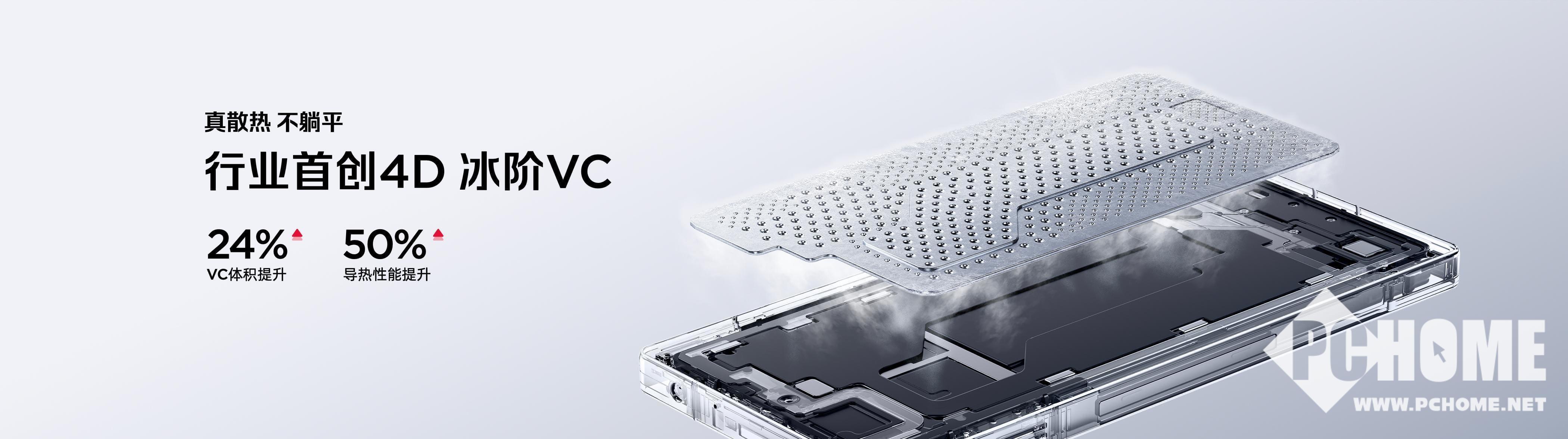 红魔11 Pro系列搭载行业首创4D冰阶VC,其体积相较前代提升24%,整体导热性能提升 50%;同时搭配电竞本级别的液态金属3.0与驭风4.0,再叠加创新的水冷技术,共同构建起“水冷+风冷+VC +液态金属”的四重散热闭环,全方位覆盖热量产生、传导、散发的各个环节,为手机高性能持续输出提供稳定保障。