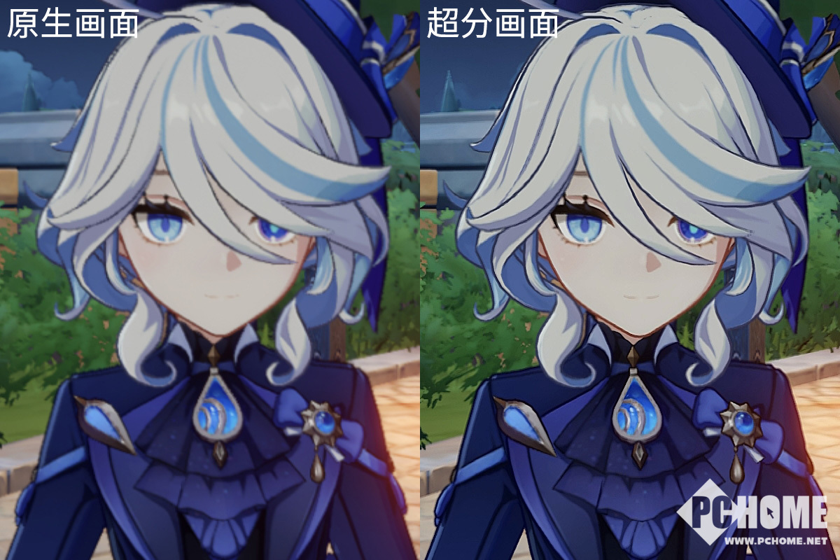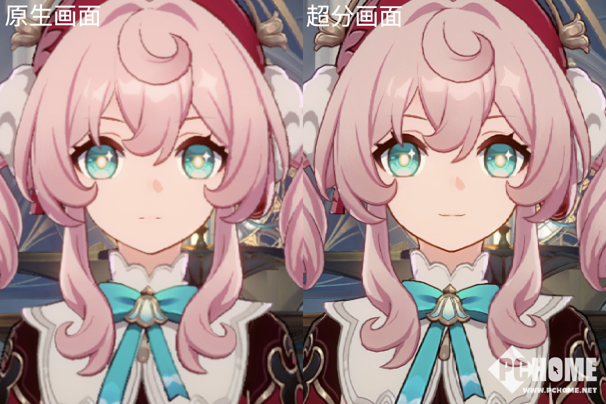 超分画面带来了解析力的显著提升,开启后与原画面相比,清晰度有非常显著的分别,画面是两个世代的产物。该功能可以极大改善游戏画质,毕竟在这种大型3D手游中,渲染精度是无法匹配屏幕分辨率的,拉近景时很容易感觉到糊。