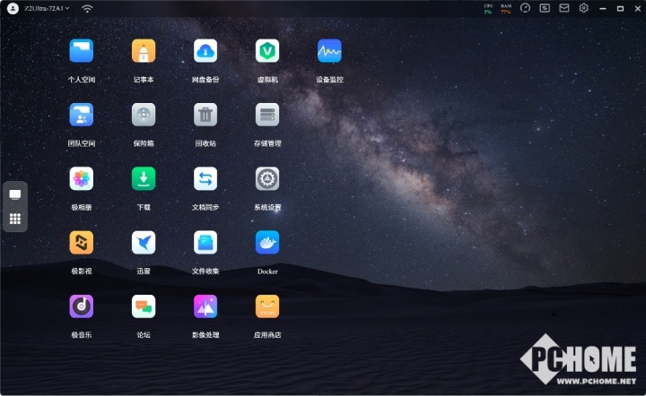 极空间Z2 Ultra,和之前的2盘位机型相比,最重要的变化就是使用了X86架构,不但速度比以前的arm架构快了好几倍,最重要的是对docker、虚拟机这样的高级功能支持更完善,带来更多可玩性。