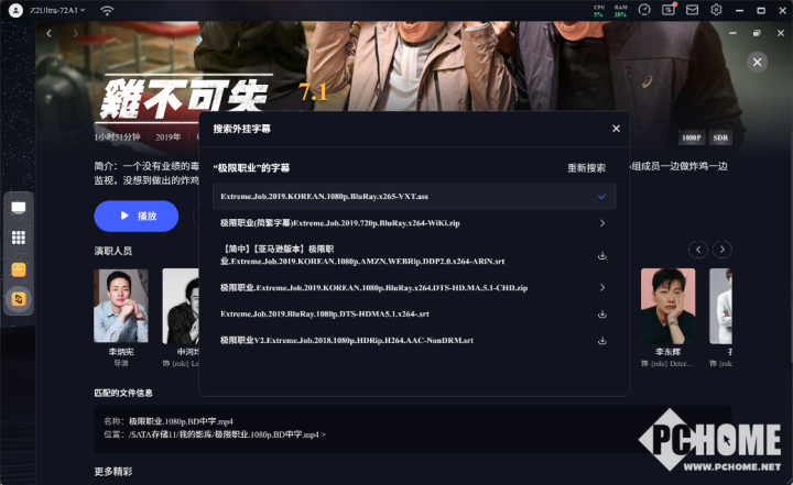 极影视应用完美支持ISO、BDMV、MKV等原盘蓝光影视文件,支持数百种音视频格式,并提供智能刮削海报墙功能,轻松匹配影视信息。还可以进行在线字幕匹配、切换音轨和声道,支持名称、评分等多种排序方式,让你的影视库变得美观有序,简直是强迫症福音,毫不夸张的说这可能是NAS里最好的视频播放器。