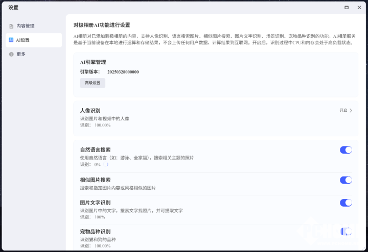 对个人和家庭用户,使用极空间Z2Ultra可以轻松备份手机照片,释放手机内存,支持苹果安卓相册自动备份,还支持AI智能相册自动分类,包括人物、地点、宝宝、宠物等,还支持基于AI引擎的人像识别、智慧搜索、图片文字识别等功能,管理大量照片也很轻松。