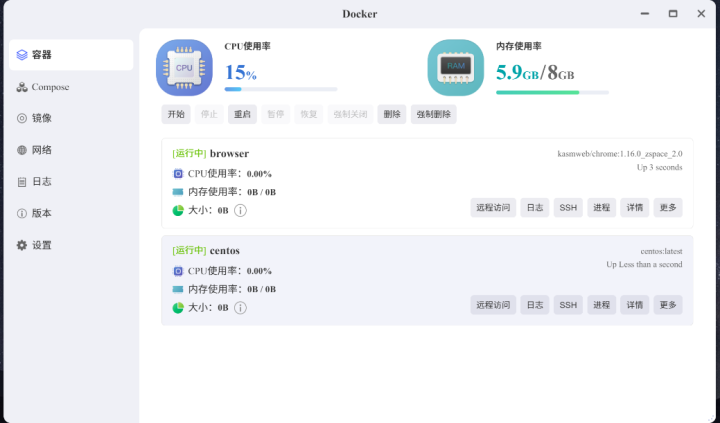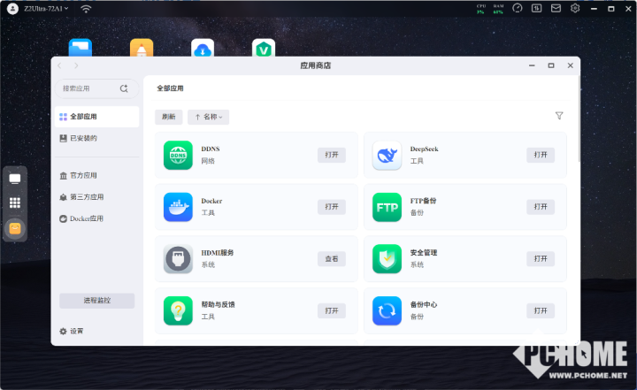 除此之外,应用商店还加入了Docker应用专区,进行方便普通用户使用Docker,也就是极客玩家们熟悉的“小鲸鱼”。Docker作为一个开源的应用容器引擎,受到许多发烧玩家们和开发者的喜欢,目前极空间Z2Ultra对于Docker的功能支持相比早前版本更加完善,例如已经支持桥接模式下的IPv6网络。