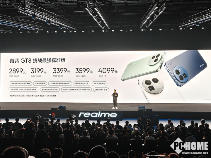 真我GT8标准版提供5个存储版本,12GB+256GB版本售价2899元,16GB+256GB版本售价3199元,12GB+512GB版本售价3399元,16GB+512GB版本售价3599元,16GB+1TB版本售价4099元。