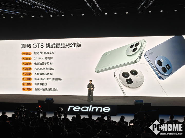 除真我GT8 Pro外,本次发布会还带来了“最强标准版”——真我GT8,该机搭载“骁龙8至尊版+电竞独显芯片R1”旗舰双芯,以及Pro同款2K 144Hz苍穹屏。影像方面,真我GT8搭载了Pro同款理光GR防眩光主摄,提供5000万超光影潜望长焦,支持3.5倍光学变焦与7倍无损变焦。