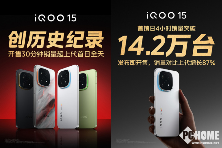 iQOO 15在发布过后就展开了首销,据iQOO手机官方透露,该机开售30分钟销量超上代首日全天销量,首销4小时销量就突破14.2万台,创iQOO历史销量新高。