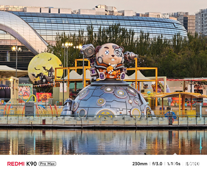 从样张来看,REDMI K90 Pro Max的远距离拍照清晰度出色,5X和10X的无损焦段拍照清晰,放大后的效果也不糊。具备不错的抓拍表现,远景机械鼠不断跳动的眼部也能实现瞬间定格不拖影,建筑表面细节、护栏部分的细节表现均完美还原。射灯也没有眩光情况,镜头表面的低反射膜作用显著。