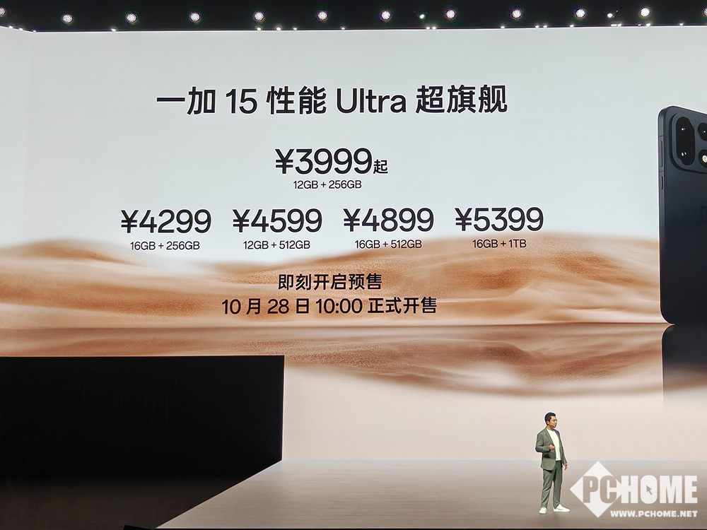 一加15提供了5个存储版本,12GB+256GB版本售价3999元,16GB+256GB版本售价4299元,12GB+512GB版本售价4599元,16GB+512GB版本售价4899元,16GB+1TB版本售价5399元,将在10月28日10:00正式开售。