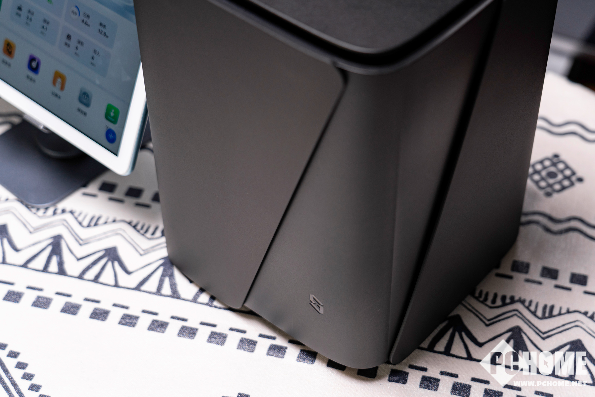 首先是外观设计,极空间Z425沿用Z423的经典设计,立式架构,两个对角位布置的异形铝合金金属盖板,不仅更美观,提升了整机的质感,也能帮助机身散热。
