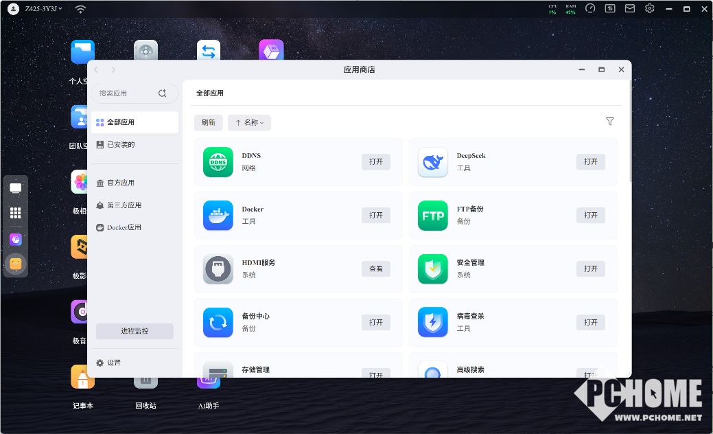 Docker是高阶玩家们最喜欢的容器应用,ZOS应用商店特别加入Docker应用专区,方便普通用户使用Docker。内置了丰富的镜像资源库,对于Docker的功能支持相比早前版本也更加完善。虽然目前应用商店里的第三方应用和Docker应用数量还不是很多,但相信未来肯定会逐渐丰富。