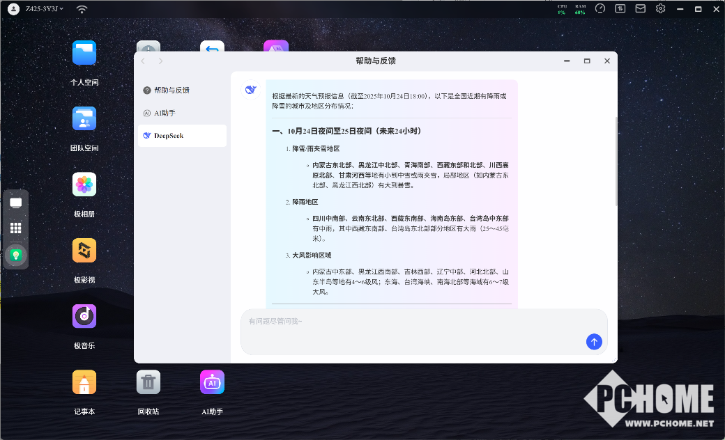 当然,一些诸如天气等需要接入互联网检索的时效性内容,你也可以使用AI助手来进行检索,使用基于云端的服务。