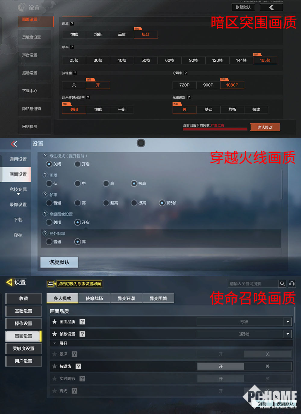 我们也测试了一下几款热门的FPS游戏,首先说一下画质表现。《暗区突围》可以开启极致+165帧画质,不过光追就不要想了,哪怕只是开启基础光追,也会被限制到90帧。这款游戏的负载很高,可以开启165+极致画质,其它特效除了光追也能全部开启,在长时间游戏后会被限制帧率。《使命召唤》可以开启标准+165帧,《穿越火线》可以开启极高+165帧画质,这两款游戏全都可以稳定165满帧。
