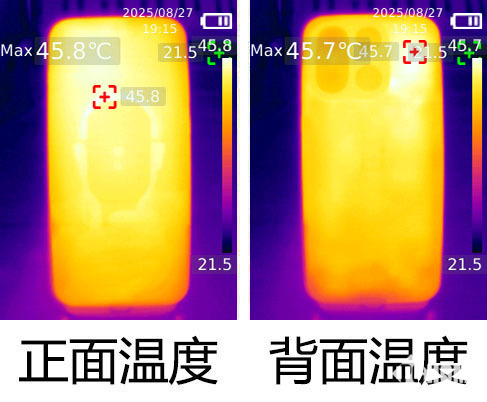 实际游戏中的感受是操控顺滑,压枪体感上就是能一步到位,频繁的据点攻防中,更是能抢先发现对方踪迹。而且发热控制非常好,正面41.4度,背面40.7度,手指操控区不会感到发热,不影响操控。