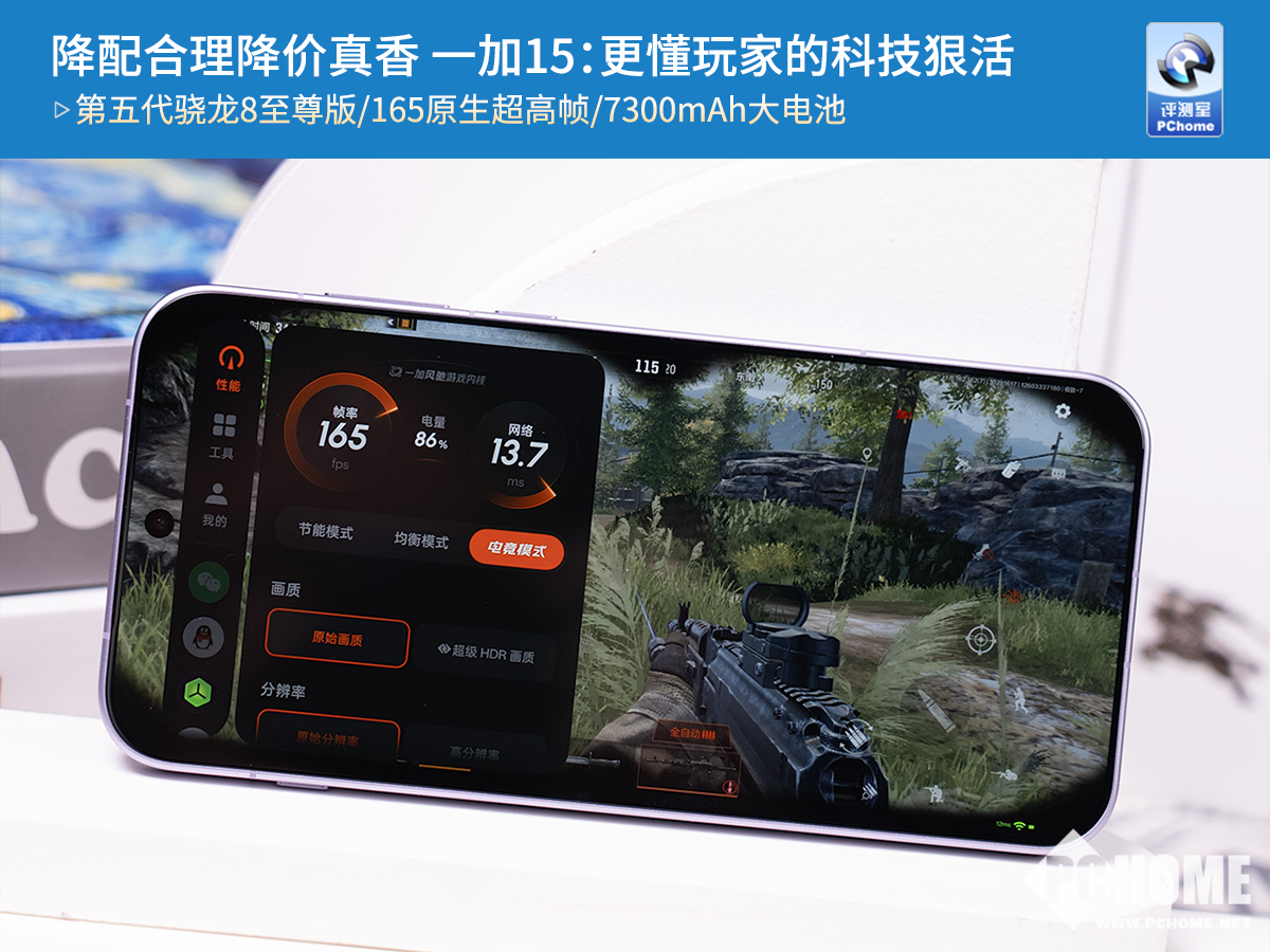 165Hz超高刷体验,并不是适配了就完事了,毕竟游戏是要长时间游玩的,这对手机的性能、散热、续航等方面都有着极高要求,好在这些全都是一加15的优势。