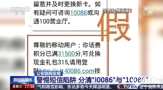 从央视提供的短信图片来看,如果不仔细查看,只是扫一眼的话,很容易认为信息是10086官方发来的。点击后的接片,也完全是官方风格,很容易让人产生混淆。