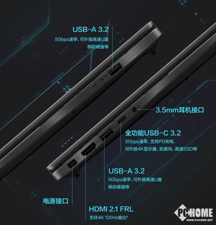 华硕无畏Pro16 2025还配备有丰富的扩展接口,包含HDMI 2.1 FRL、USB-C、USB-A、3.5mm音频插孔等,无需扩展坞即可外接显示器、移动硬盘等外部设备,真正做到创作随时开工。