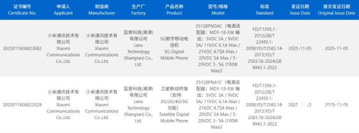 小米17 Ultra已经通过了3C认证,从认证信息来看,小米提供了两个版本,分别为普通版与卫星版,两款机型标配100W快充。预计其它规格上也不会进行区分,只是在卫星通信功能上有所区别。