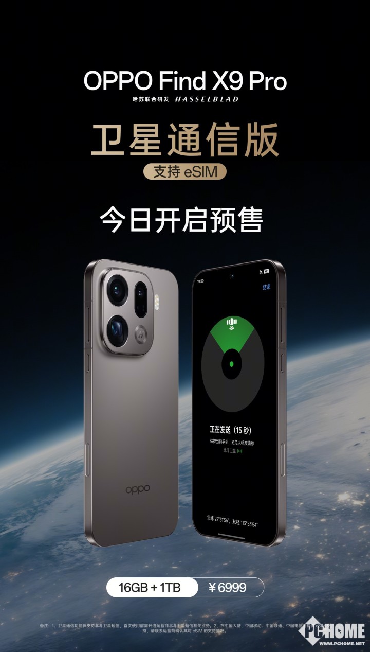 作为OPPO 30周年巨献之作,Find X9 Pro卫星通信版配备16GB+1TB的顶配规格,售价6999元,于11月7日11:00开启预售,11月14日全渠道正式开售。
