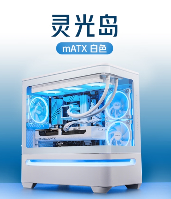 想要获得流畅的游戏体验,那下面这套DIY方案值得参考,机箱首选灵光岛mATX。其采用华硕专利悬浮式海景房设计,底部留出悬浮空间,大幅提升进风量,散热性能更稳定,充分满足主机散热需求。同时,还采用弧面防爆钢化玻璃,为内部硬件提供了充分的保护。搭配嵌入式RGB灯带,颜值表现十分惊艳。双11期间,该机箱到手价最低仅需494元。