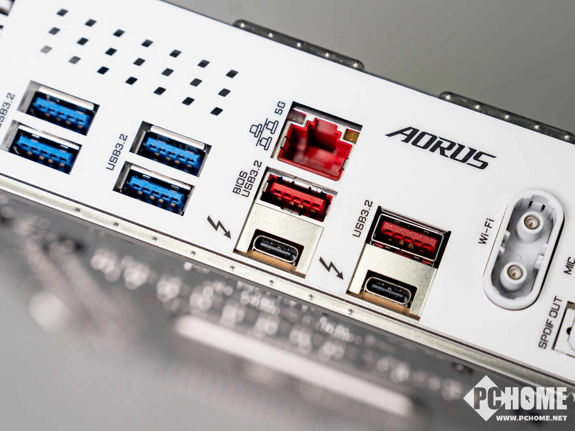 背部I/O接口方面,Z890电竞冰雕配备双USB-C雷电4接口,支持DP视频输出。另有四个USB 3.2 Gen1(蓝色)和2个USB 3.2 Gen2(红色)。网络方面,新一代WiFi 7定向超高增益天线,支持高达320 MHz的频宽和6GHz无线频段,增加了网络带宽上限,有线网卡则是5Gbps的Realtek自适应网卡。