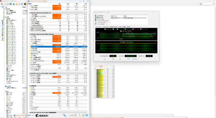 RTX 5080显卡的TDP功耗高达360瓦,再加上酷睿Ultra 9,因此对于主板供电有着较高的要求。在AIDA64+FurMark 2的4K分辨率双烤机测试中,技嘉RTX 5080超级雕输出功耗依然为357瓦(Board Power Draw),同时Ultra 9 285K处理器的平均输出功耗也没有下降,总输出功耗达到600瓦,充分证明了技嘉Z890电竞冰雕主板的稳定供电能力。
