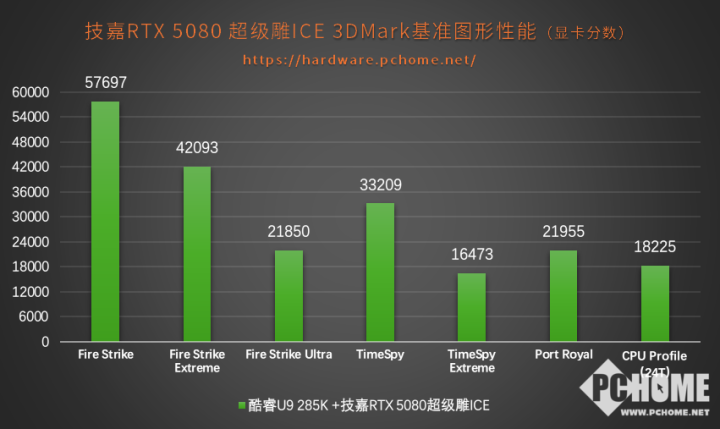 在3DMARK的基准图形性能测试中,技嘉RTX 5080超级雕TimeSpy的成绩高达33209分,TimeSpy Extreme达到16473分。24线程的CPU Profile测试中,得分到18225,Fire Strike、Fire Strike Extreme与Fire Strike Ultra三个场景的显卡分数分别为57697、42093和21850,Port Royal光追测试得分也高达21955分,整体性能表现无愧于顶流身份。